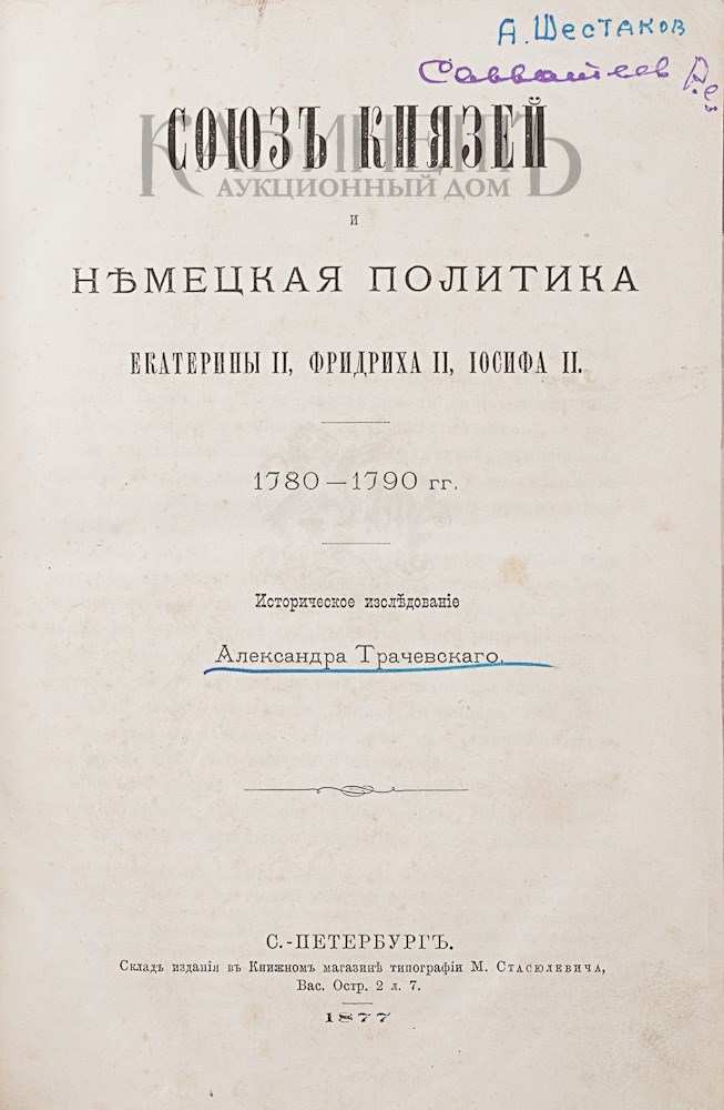 Трачевский А. Союз князей и немецкая политика Екатерины II, Фридриха II, Иосифа II. 1780 – 1790 гг. СПб., Типография М. Стасюлевича, 1877.
