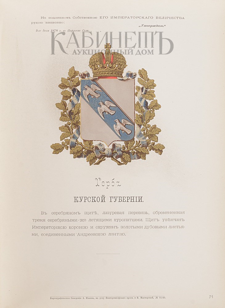 Гербы губерний и областей Российской империи. СПб., Типография Министерства Путей Сообщения, 1880.