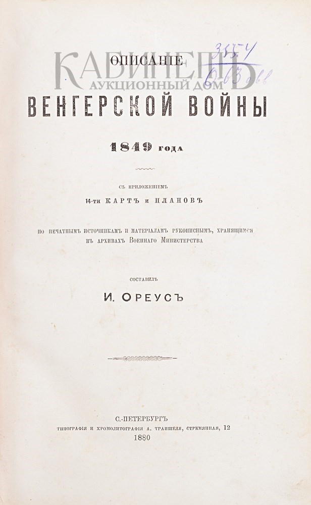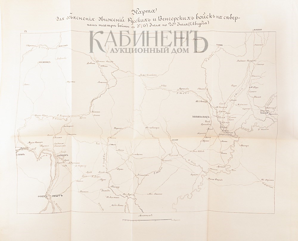 Архив аукциона №15(55) Лот 113 Ореус И. Описание венгерской войны 1849 года. С приложением 14 карт и планов. По печатным