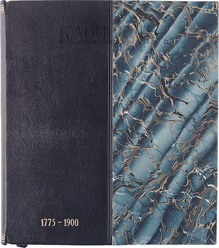 Экземпляр в современном полукожаном переплете с золотым тиснением по корешку и верхней крышке, под переплетом сохранена издательская обложка.