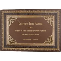 Экземпляр в издательском картонажном переплете с золотым тиснением по верхней крышке и блинтовым тиснением по нижней крышке, с тройным золотым обрезом. Сохранены издательские кальки. На двух издательских кальках пояснительные надписи.