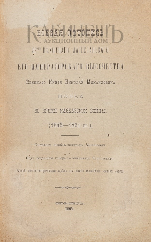 Книга содержит подробное освещение деятельности и боевых действий 82-го пехотного Дагестанского пехотного полка в ходе кампаний и походов Кавказской войны (1817-1864) в период с 1845 по 1861 гг. Дагестанский пехотный полк был создан в декабре 1845 г. из сильно поредевших частей Волынского, Минского и Модлинского пехотных полков, а также личного состава 11-го линейного Кавказского батальона. Возле селения Темир-Хан Шур («озеро Тамерлана») был построен укрепленный лагерь для полка. Части полка с 1846 по 1859 гг. регулярно участвовали в стычках и боях с горскими формированиями, его батальоны несли боевое дежурство на Кавказской линии. В августе 1859 г. 2-й батальон и стрелковые роты полка отличились при взятии аула Гуниб.
