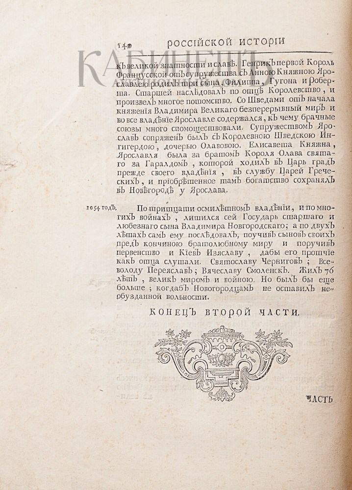 Часть II. «От начала княжения Рюрикова до кончины Ярослава Первого»: жизнь восьми первых великих кня- зей, занимавших российский престол, от 862 до 1054 года.