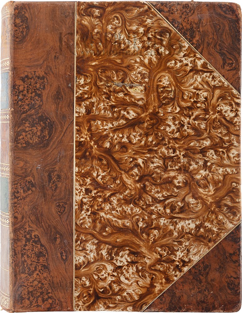 Экземпляр во владельческих полукожаных переплетах с золотым тиснением по корешку и крышкам, с ляссе. Тройной золотой обрез. Издательские обложки сохранены. Незначительные загрязнения некоторых страниц издания.