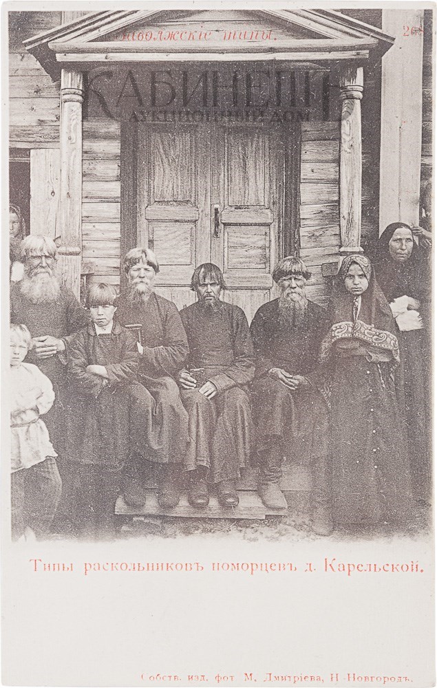 7) Заволжские типы. Типы раскольников поморцев д. Карельской. Н.-Новгород, Собствен. Изд. Фот. М. Дмитриева. Размер: 14 х 9 см.