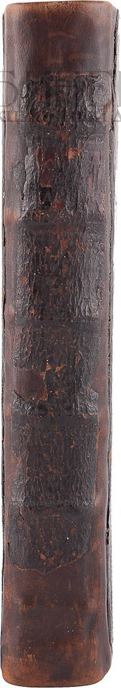 Экземпляр в старинном кожаном переплете. Аккуратная реставрация по корешку внутри переплета и снаружи. Загрязнение от перелистывания на уголках страниц, следы воды. Залом некоторых страниц в нижнем углу.