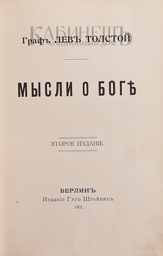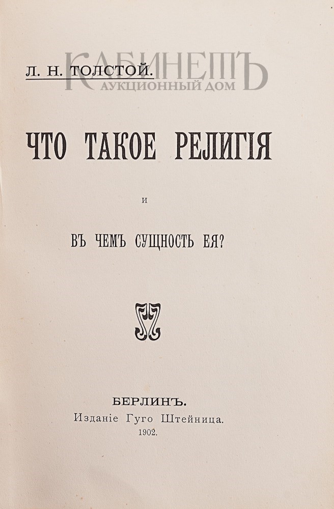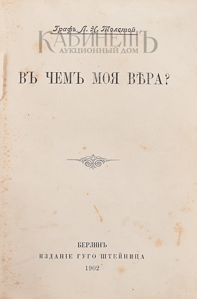 3) Толстой Л.Н. В чем моя вера? Берлин, Издание Гуго Штейница, 1901.