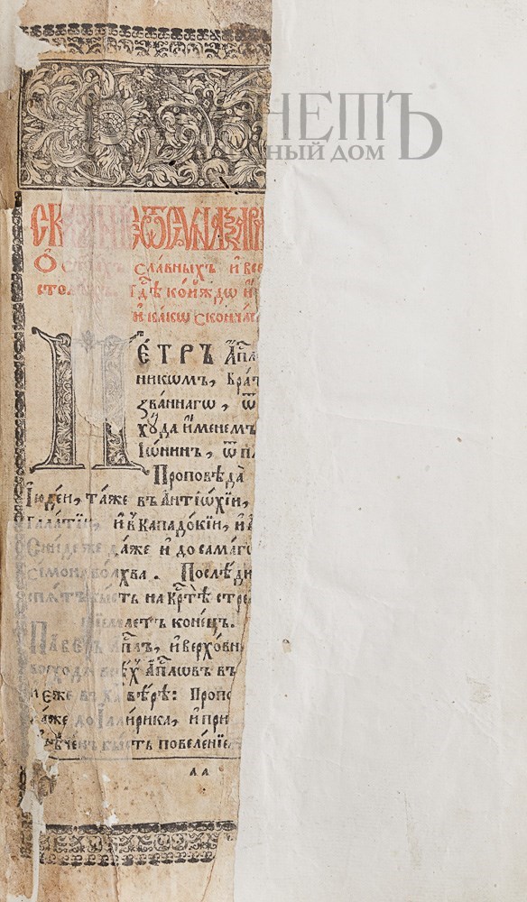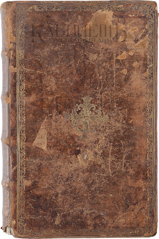 Экземпляр в старинном цельнокожаном переплете середины XVIII века с золотым тиснением по корешку и крышкам, титульный лист наполовину утрачен – восстановлен бумагой, некоторые страницы фрагментарно надклеены бумагой. Утраты первых шести листов с титулом, предисловием, гербом Желиборских, утраченные страницы 241-245 восстановлены от руки в конце XIX века.