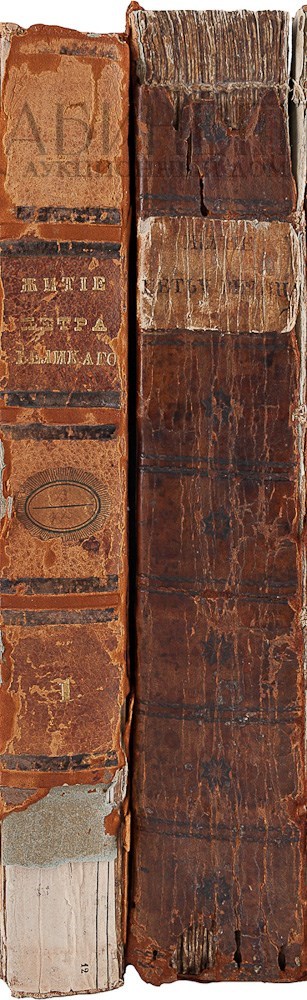 Сборный комплект из первого и второго издания Орфелина Захария «Житие и славные дела Петра Великого, самодержца Всероссийского с предположением краткой географической и политической истории о российском государстве».
