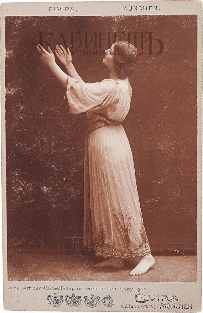 Айседора Дункан (1877—1927) — американская танцовщица-новатор, основоположница свободного танца. Разработала танцевальную систему и пластику, которую сама связывала с древнегреческим танцем. Жена Сергея Есенина в 1922—1924 гг.