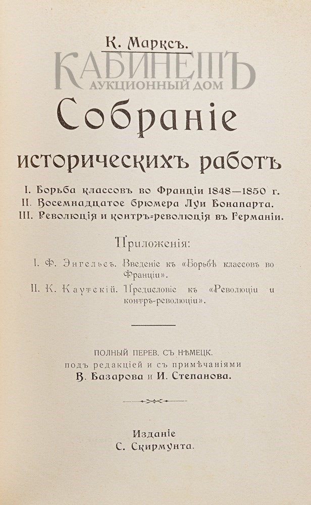 2) Маркс К. Собрание исторических работ. СПб., Издание С. Скирмунта, типография «Север», 1906.