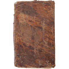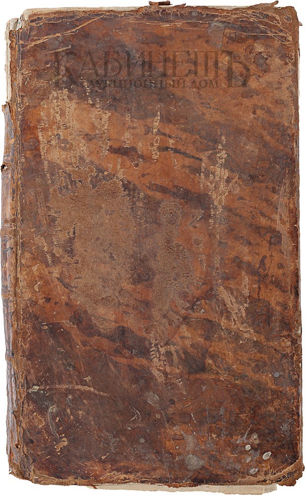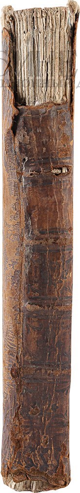 Экземпляр в старинном цельнокожаном переплете, утрата верхней части корешка, трещины по корешку. Утрата фрагмента титульного листа восстановлена новой бумагой.