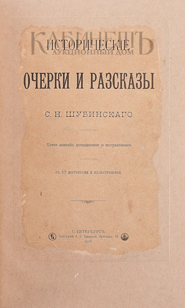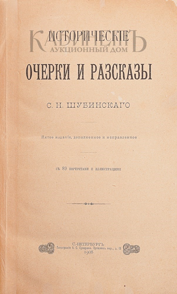 Шубинский С.Н. Исторические очерки и рассказы. Пятое издание, дополненное и исправленное. С 89 портретами и иллюстрациями. СПб., Типография А.С. Суворина, 1908.