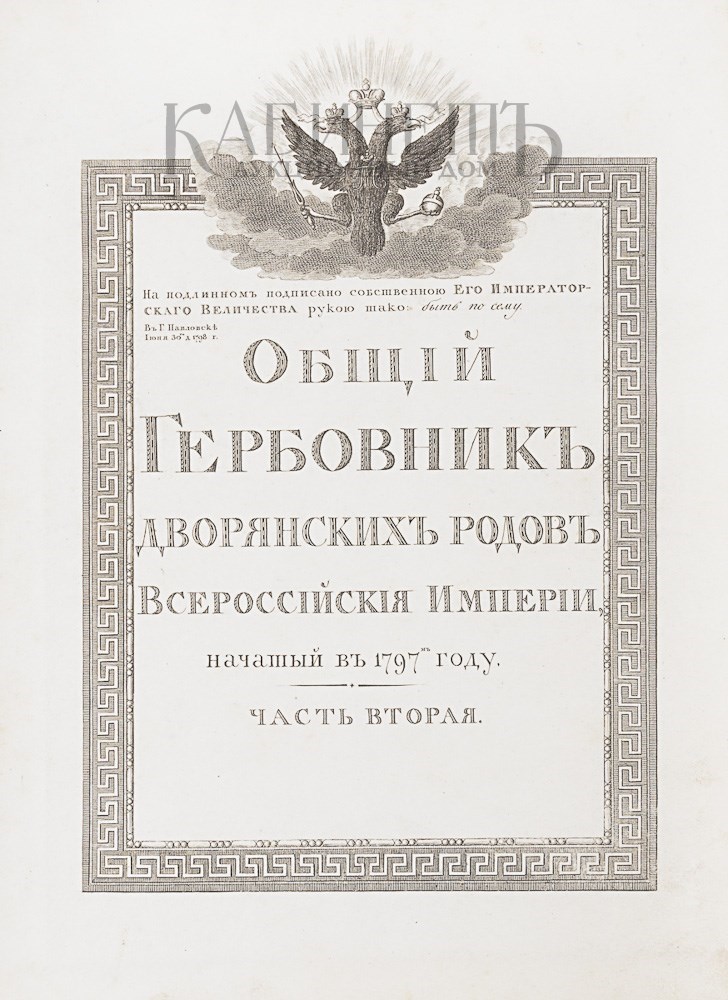 Появление «Общего гербовника дворянских родов всероссийской империи» связано с проводившейся Павлом I реформой в области дворянской родовой геральдики. Именно манифест Павла I от 20 января 1797 года положил начало юридическому становлению российских и малороссийских гербов. Составление «Общего гербовника…» велось в соответствии с утвержденной Павлом I структурой.