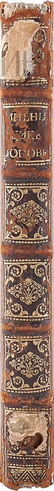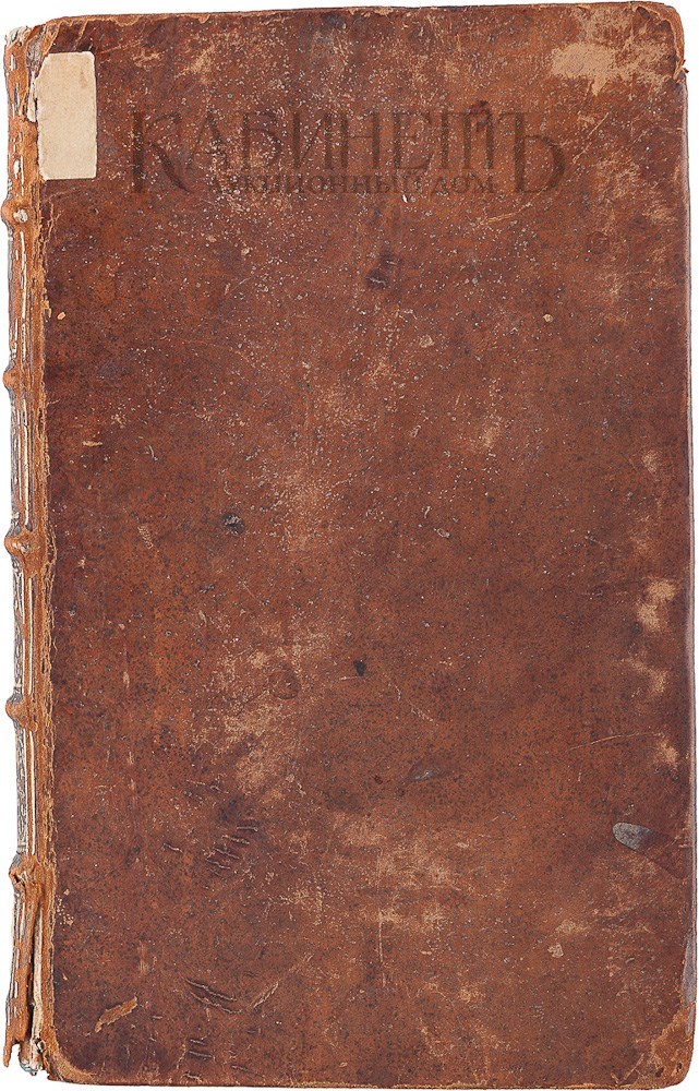 Экземпляр в старинном цельнокожаном переплете с золотым тиснением по корешку, незначительные утраты в верхней и нижней части корешка, на форзаце сдед от наклейки, на титульном листе следы от выведенных штампов.