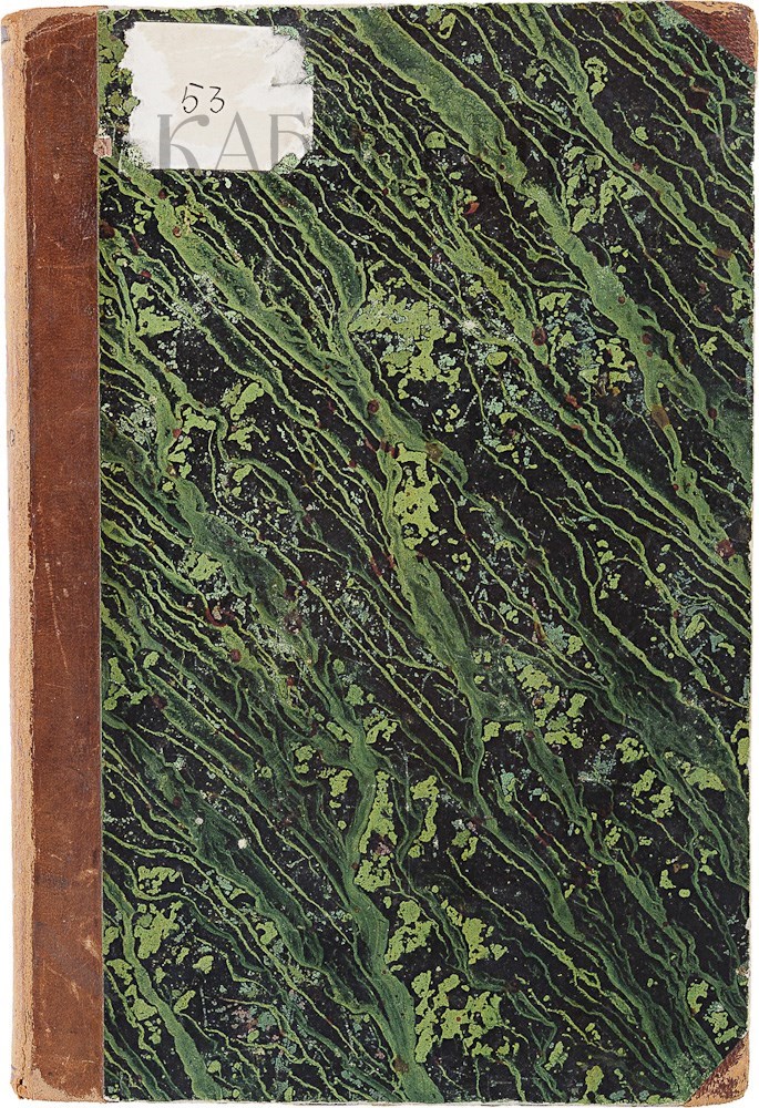 Экземпляр во владельческом полукожаном переплете. Портрет утерян. Следы влаги на некоторых страницах книги. Лисьи пятна. Продавленность задней крышки по верхнему краю, залом последних страниц книги по верхнему краю.