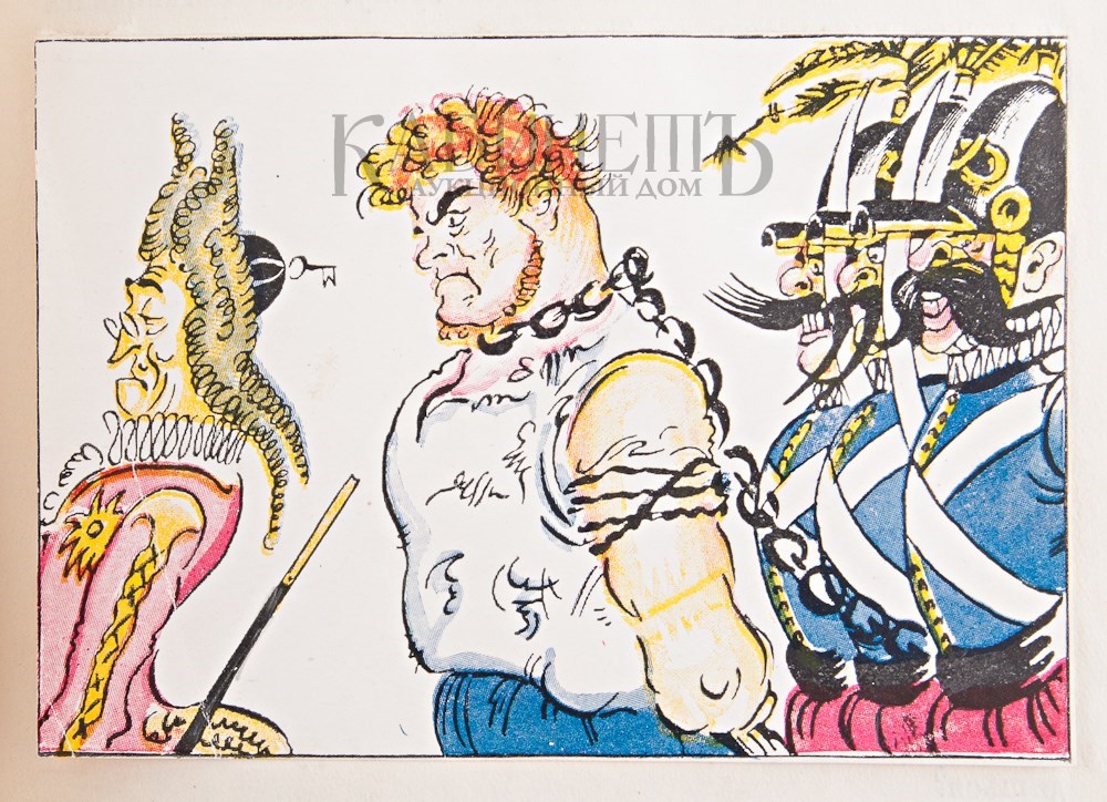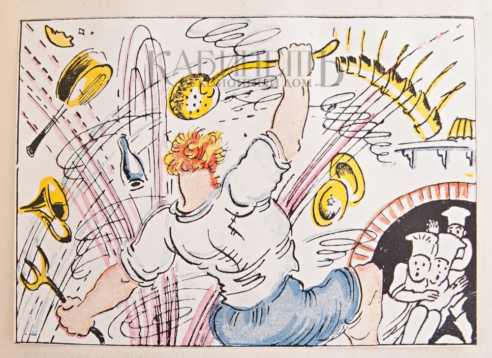 Экземпляр в современном картонажном переплете. Издательская обложка сохранена и дублирована на современную картонажную основу. Утрата фрагментов издательской обложки по краям. Форзацы реставрированы. Две вклейки с иллюстрациями выпадают. Одна иллюстрация утрачена. Загрязнение страниц от частого перелистывания. Реставрация отдельных страниц: укреплены надрывы. Следы воды на отдельных страницах.