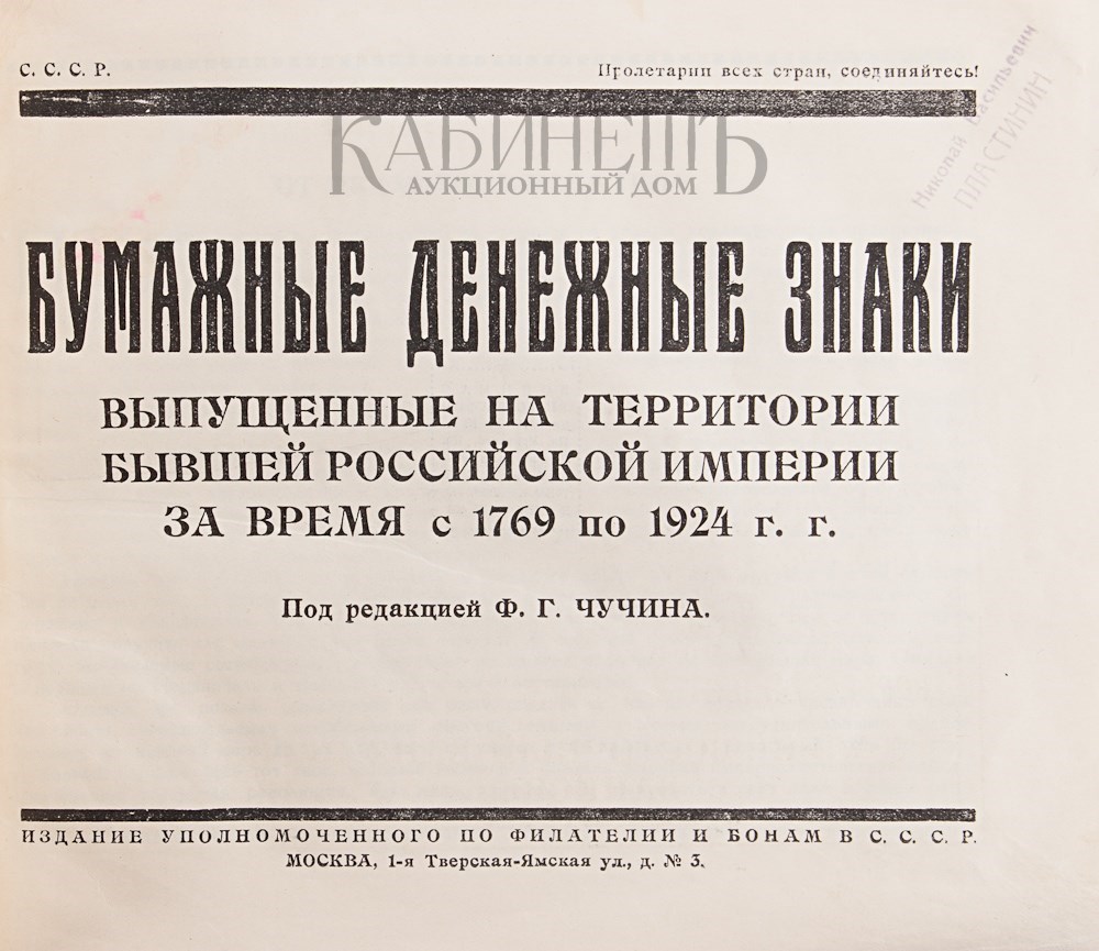 Бумажные денежные знаки, выпущенные на территории бывшей российской империи за время с 1769 по 1924 гг.