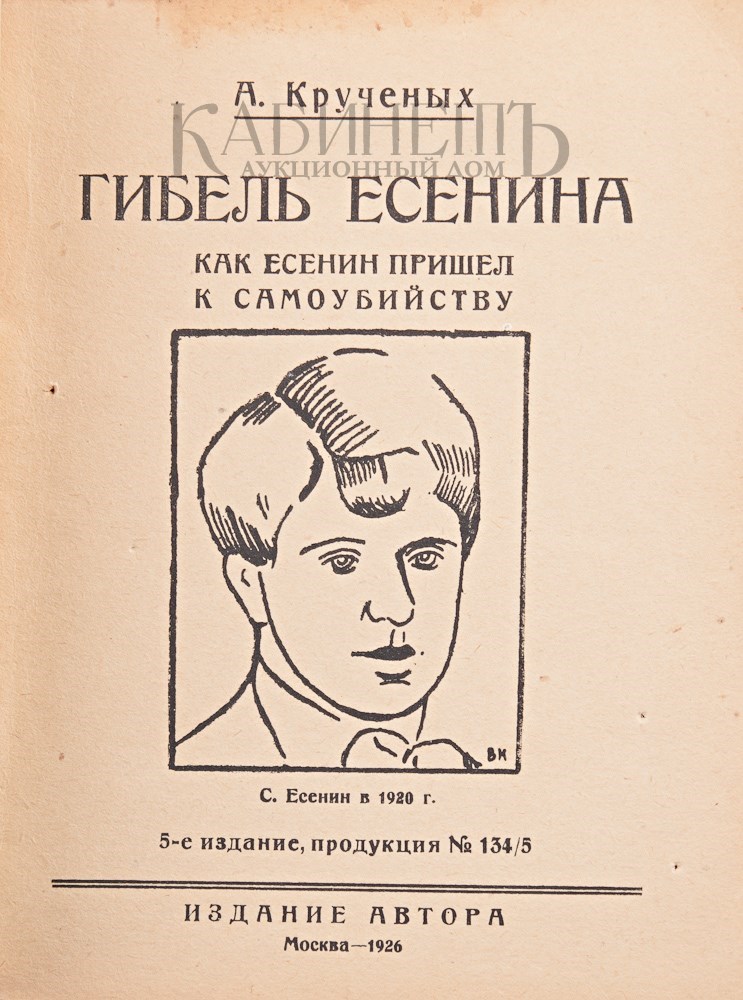 Крученых А. Гибель Есенина. (Как Есенин пришел к самоубийству). 5-е издание, продукция 134/5. М., издание автора, 1926.