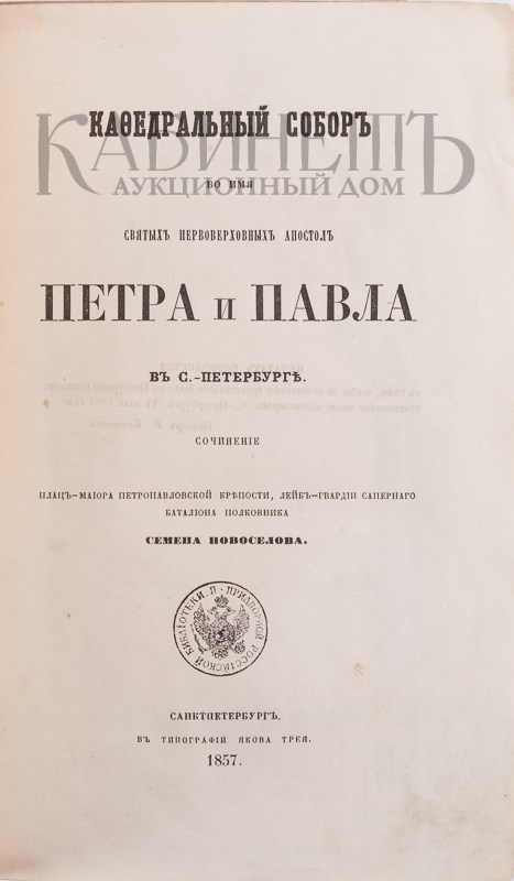 Новоселов С. Кафедральный собор Петра и Павла в Санкт-Петербурге. СПб., в типографии Якова Трея, 1857.