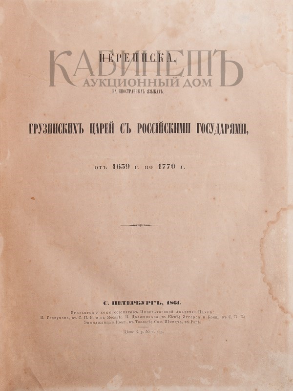 Переписка на иностранных языках грузинских царей с российскими государями от 1639 г. по 1770 г. СПб., в типографии Императорской академии наук, 1861.