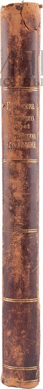 Экземпляр в старинном полукожаном переплете с золотым тиснением на корешке. Потертости переплета, надрыв в нижней части корешка, повреждение в верхней части корешка, лисьи пятна, разводы от воды, плесень в верхнем поле страниц. Экслибрис на форзаце.