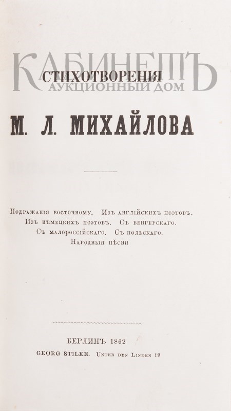 Михайлов М.Л. Стихотворения. Берлин, Georg Stilke, 1862.