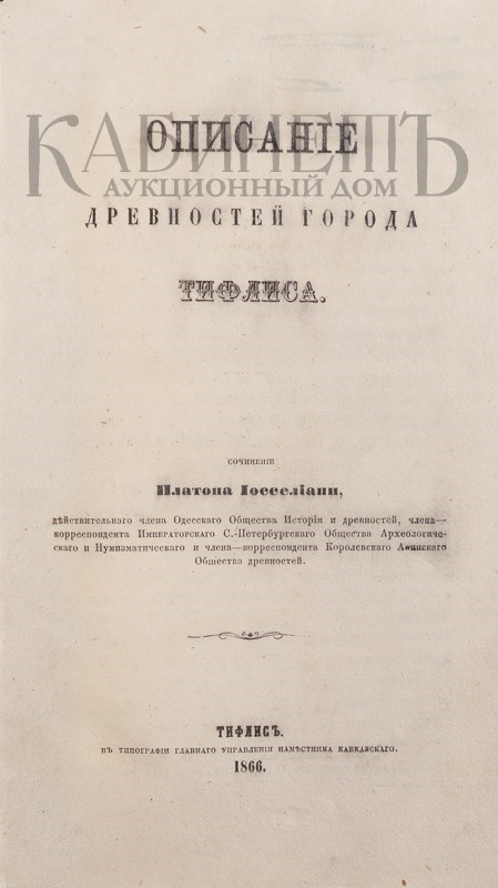 Иоселиани П. Описание древностей города Тифлиса. Тифлис, в типографии Главного Управления наместника Кавказского, 1866.