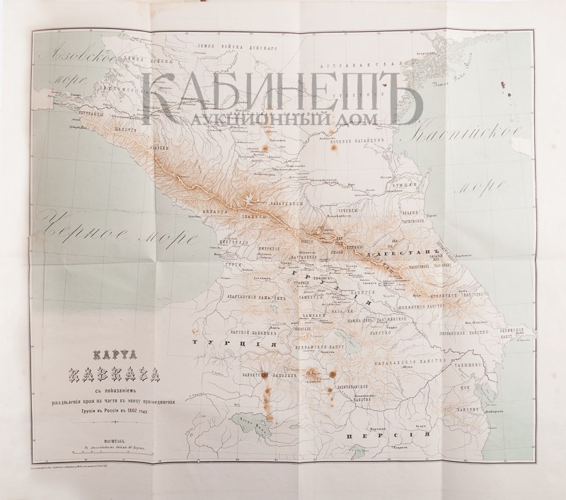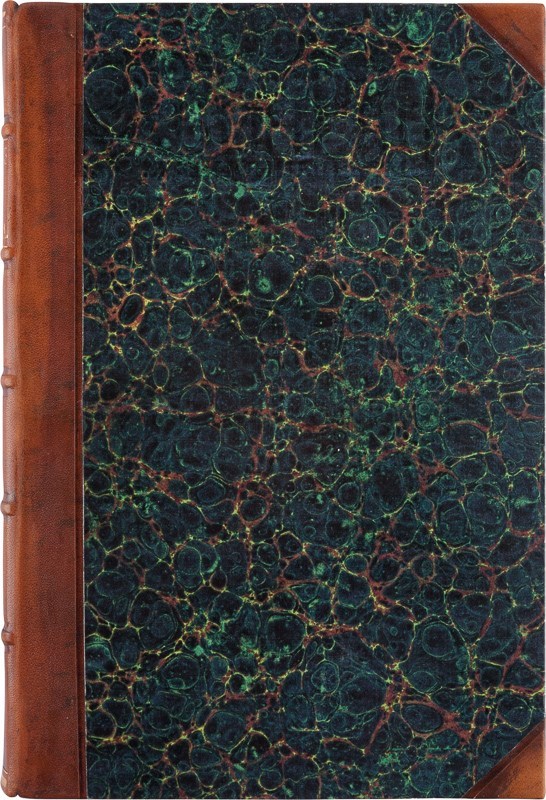 Экземпляр во владельческом полукожаном переплете с золотым тиснением по корешку. Загрязнение форзацев. Утрата фрагментов уголков стр. 291-294. Залом уголков отдельных страниц. Прорыв титульного листа у корешка. Утрата незначительных фрагментов отдельных страниц. Следы воды на листах и планах. Аккуратная реставрация карты. Временные пятна.
