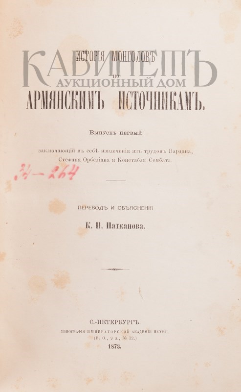 История Монголов по Армянским источникам, заключающих в себе извлечения из трудов Вардана, Стефана Орбелиана и Конетабля Сембата. Перевод и объяснения К.Н. Натанова. 2 выпуска в одной книге. СПб., типография Императорской Академии наук, 1873.