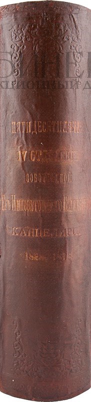 Экземпляр в старинном коленкоровом переплете с остатками золотого тиснения по корешку и верхней крышке,