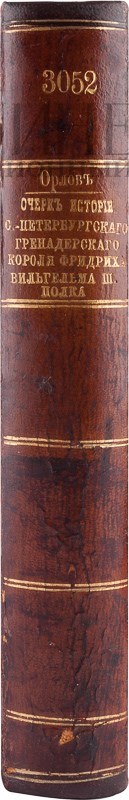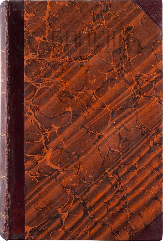 Экземпляр в старинном полукожаном переплете с золотым тиснением по корешку и в специально изготовленном современном кожаном футляре с золотым тиснением по корешку и крышкам. Реставрация корешка. На форзаце штамповый экслибрис библиотеки Л.-Г. Преображенского полка. Реставрация по корешку внутри переплета. Утрачен небольшой фрагмент корешка. Состояние хорошее.
