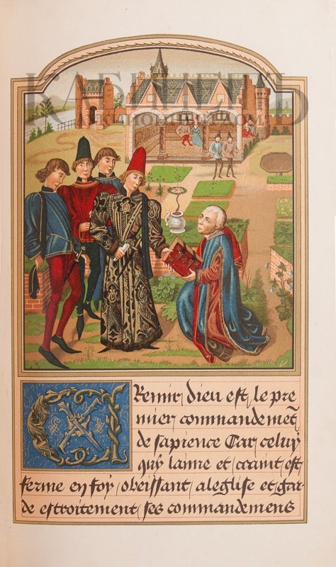 Экземпляр в старинном полукожаном переплете, корешок реставрированный, под переплетом сохранены хромо-ли-