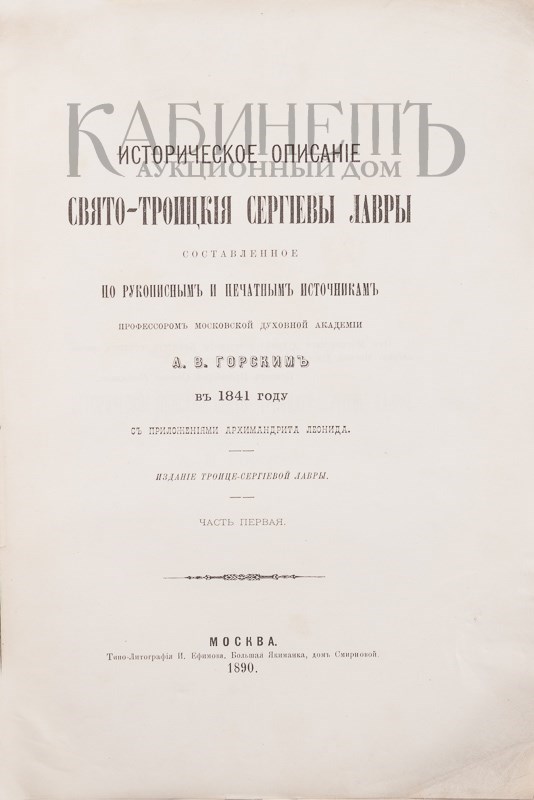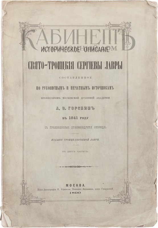 Горский А.В. Историческое описание Свято- Троицкия Сергиевы лавры, составленное по рукописным и печатным источникам профессором Московской духовной академии А.В. Горским в 1841 году, с приложениями архимандрита Леонида. В 2 частях. М., издание Троице-Сергиевой лавры, 1890.
