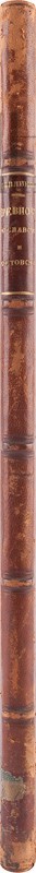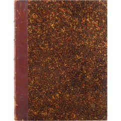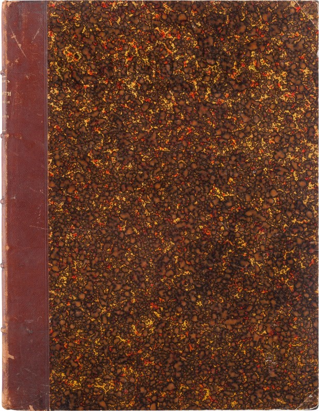 Экземпляр в старинном полукожаном переплете эпохи с бинтами и золотым тиснением на корешке. Форзацы из бумаги «под мрамор». Потертости корешка. Следы клея в уголках форзацев. Блок в очень хорошей сохранности. Бумажная наклейка зарубежной переплетной мастерской на переднем форзаце.