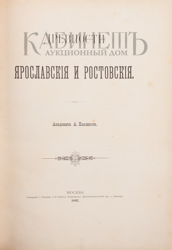 Павлинов А. Древности ярославские и ростовские. М., типография Э. Лисснера и Ю. Романа, 1892.