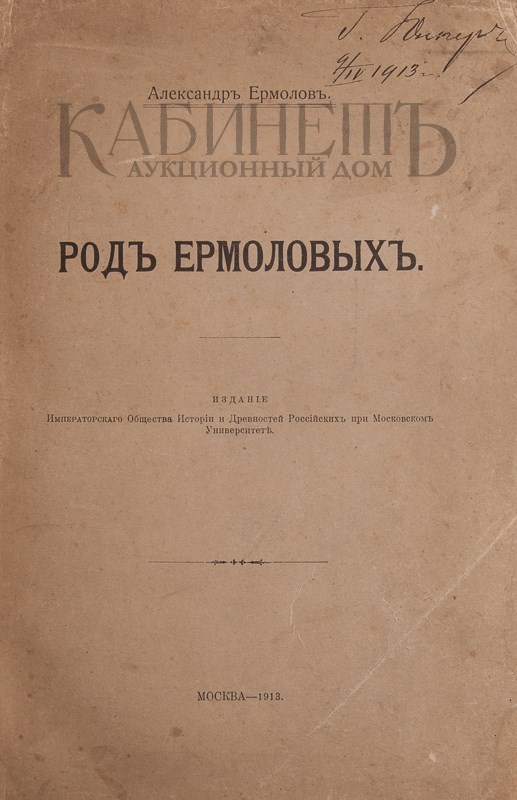 Экземпляр в современном цельнокожаном переплете с блинтовым и золотым тиснением, на верхней крышке суперэкслибрис рода Ермоловых в орнаментальной рамке. Бинты. Золототисненая подвертка. Издательская обложка сохранена под переплетом. Аккуратная реставрация обложки, титула, некоторых страниц. Каран- дашные и чернильные пометы на страницах. Блок преимущественно чистый. Владельческая роспись на верхнем листе обложки. Экслибрис на обороте верхнего листа обложки.