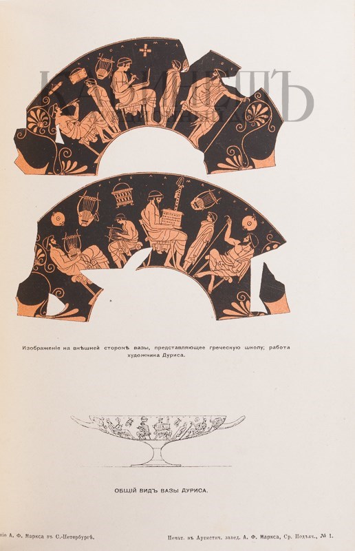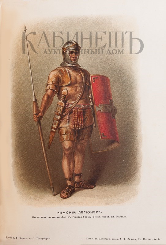 Экземпляр в четырех современных полукожаных переплетах с золотым тиснением по верхним крышкам и корешкам. Бинты. Крапленые обрезы. Ляссе. Под переплетами сохранены издатель- ские обложки выпусков 1, 4-12. Кальки преимущественно сохранены. В коллекционной сохранности. Редкие загрязнения страниц, блоки немного подрезаны по верхнему краю, в каждом томе аккуратно подклеены листы и обложки в начале блока. Утрата 2 л. ил. и одного ненумерованного листа в томе II, 1 л. ил. в томе III. Печать книжного магазина. Т-ва М.О. Вольф на издательской обложке тома II.