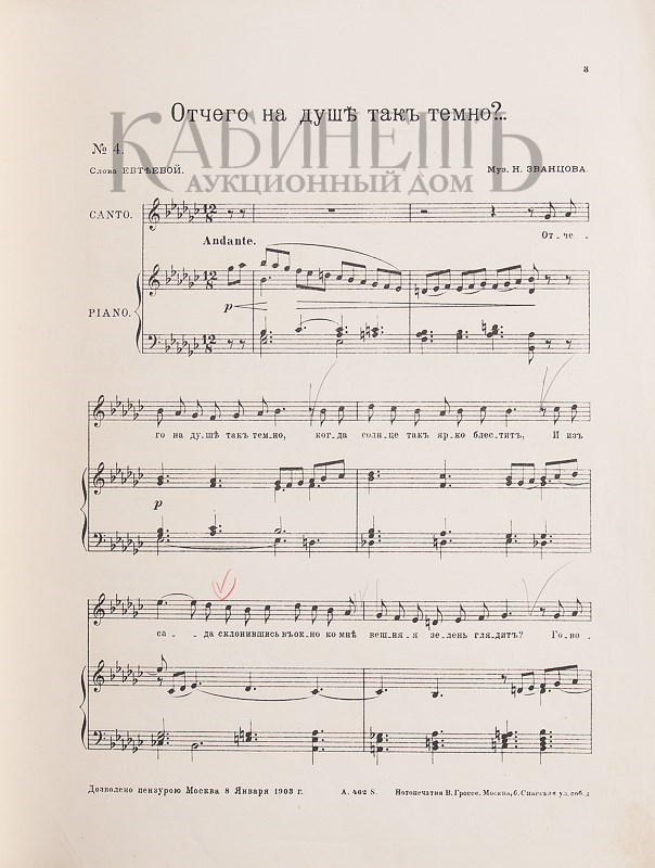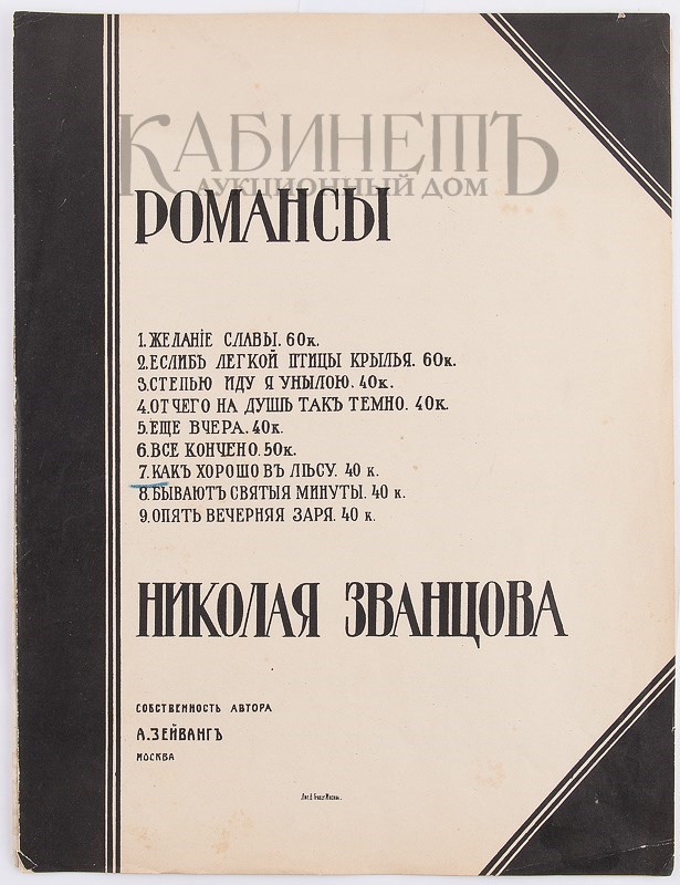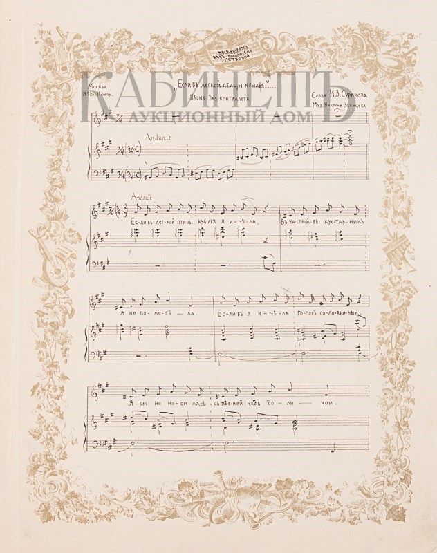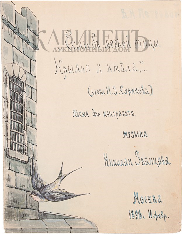 1) Званцев Н., Суриков И. Клавир. «Если б легкой птицы крылья я имела...» М., февраль 1896 г.