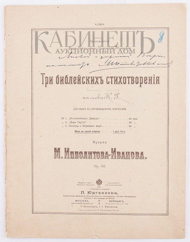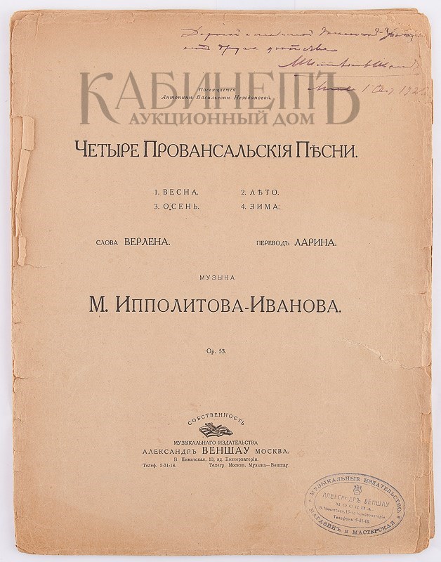 Автографы композиторов М. Ипполитова–Иванова и Н. Милашевского.