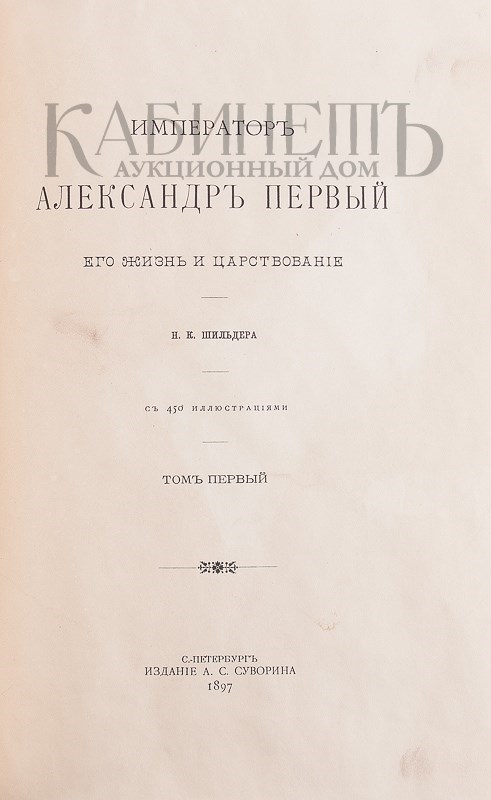 Шильдер Н. К. Император Александр Первый. Его жизнь и царствование. С 450 иллюстрациями. В 4-х томах. СПб., издание А.С. Суворина, 1897.
