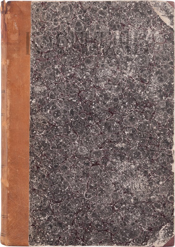 Экземпляр в старинном полукожаном переплете. Незначительные потертости корешка, утраты маленьких фрагментов двух последних листов, трещины между крышками и блоком.