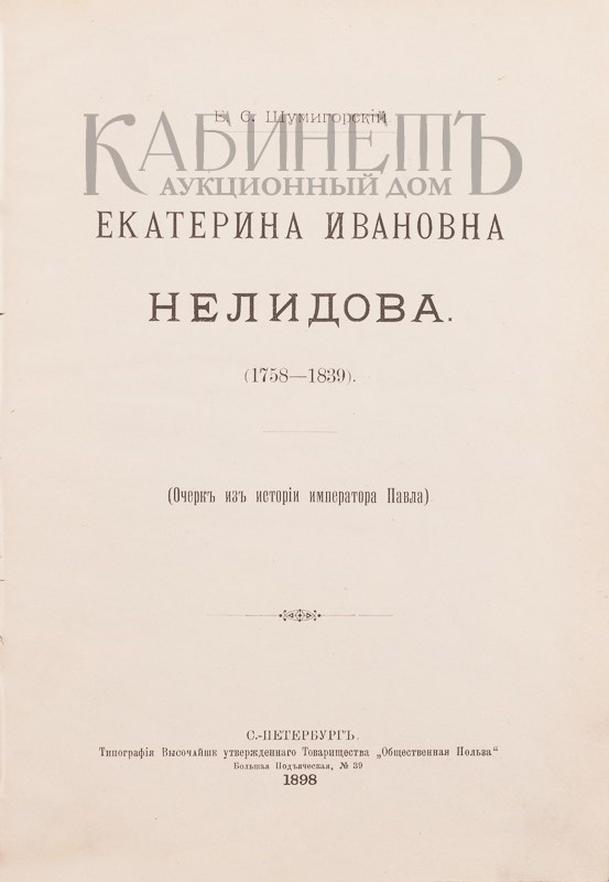 Шумигорский Е.С. Екатерина Ивановна Нелидова. (1758-1839). (Очерк из истории императора Павла). СПб., типография «Общественная польза», 1898.