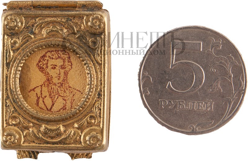 Экземпляр в издательской художественной бумажной обложке, издание вложено в латунный футляр. На титульном листе пятно и надрыв.