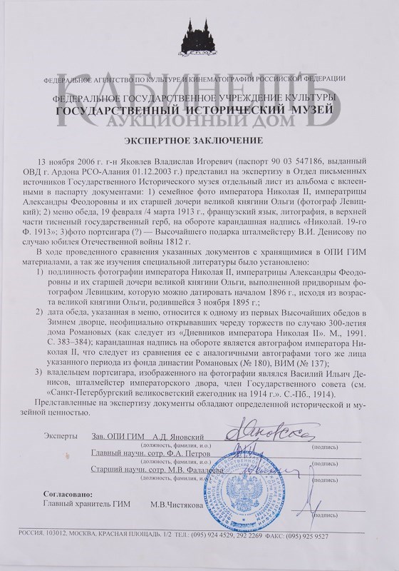 3) Высочайший подарок шталмейстеру В.И. Денисову по случаю юбилея Отечественной войны 1812 г. (портсигар)