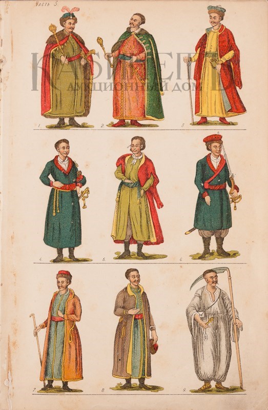 Экземпляр в старинном полукожаном переплете. Кожаные уголки утрачены. Потертости корешка и крышек. Реставрация карт, авантитула и отдельных листов. Разлом по корешку внутри переплета. Загрязнение нижнего края титульного листа и листов с иллюстрациями. Владельческие пометки чернилами разного цвета на авантитуле и титульном листе.