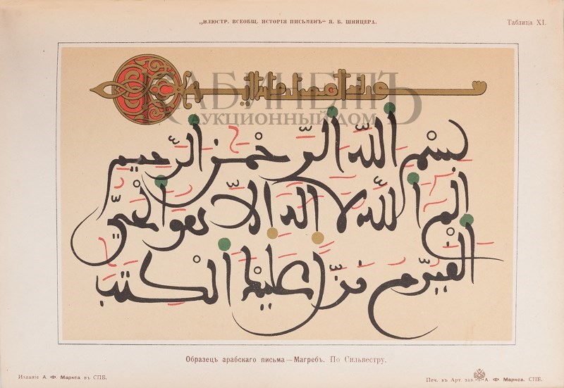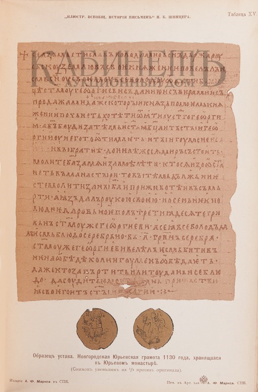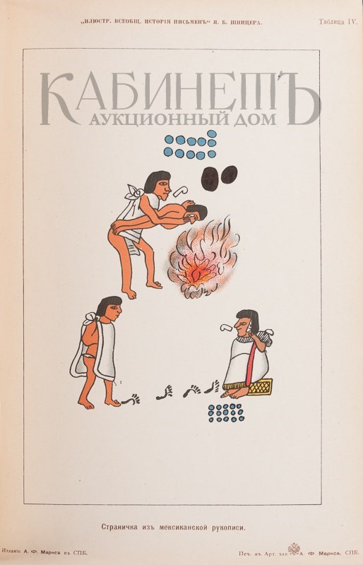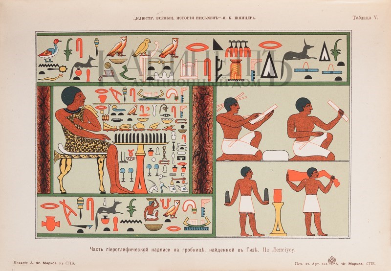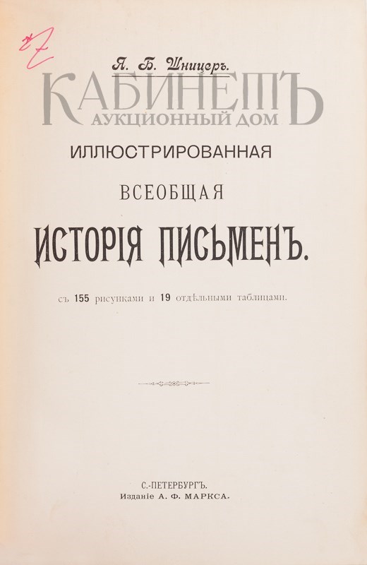Шницер Я.Б. Иллюстрированная всеобщая история письмен. С 155 рисунками и 19 отдельными таблицами. СПб., издание А.Ф. Маркса, 1903.