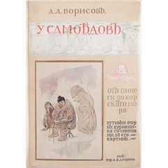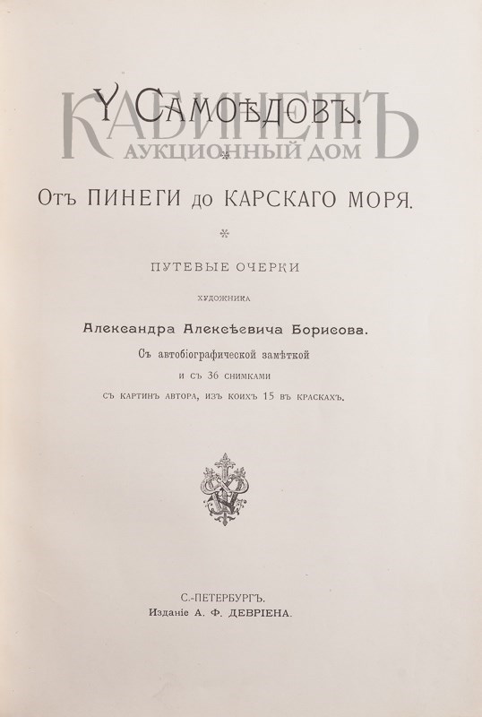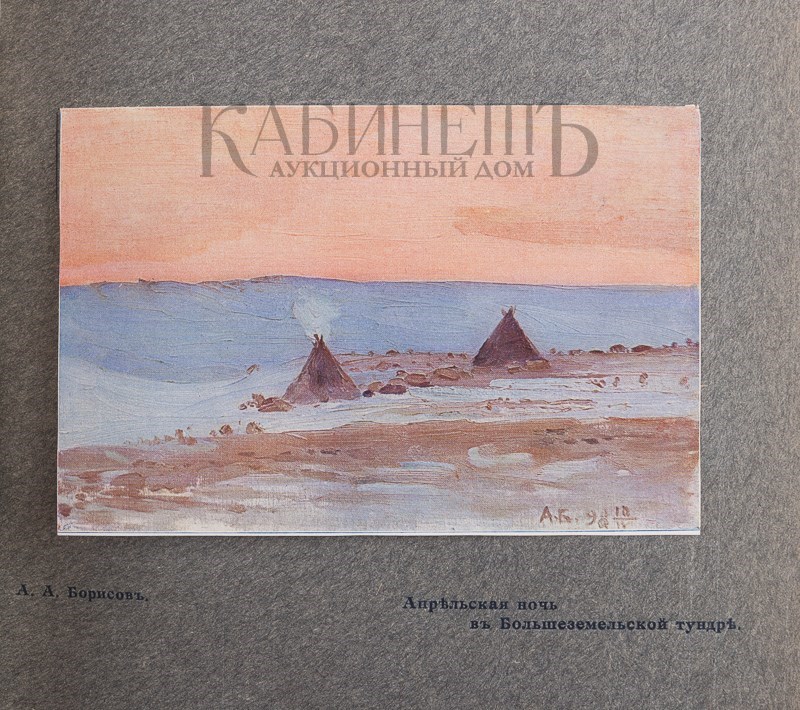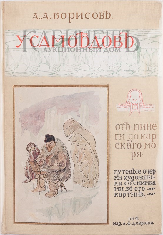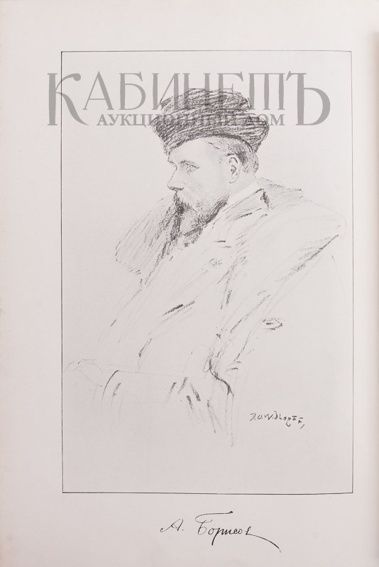 Экземпляр в коленкоровом художественном издательском переплете с золотым тиснением по корешку и вклейкой на