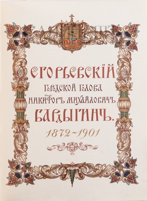 [Виталь А.А.] Егорьевский Городской Голова Никифор Михайлович Бардыгин, 1872–1901. Худ. Б. Зворыкин. М., т-во скоропечатни А.А. Левенсон, 1909.