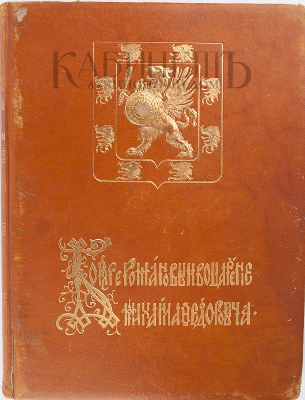 Экземпляр в издательском художественном цельнокожаном переплете с золотым тиснением по корешку и верхней крышке. Форзацы из узорной бумаги. Издание на мелованной бумаге. Незна- чительные потертости переплета, на корешке в нижней части трещена.
